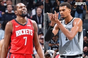 媒体人:曾经划时代球员KD不像自己 全新划时代球员文班一锤定音