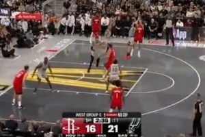 一抢四?!索汉三分不中 凯尔登从火箭4人之间抢到前场板补篮打停