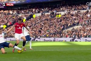 热刺1-1扳平曼联!特尔背身单打,皮球蹭到德里赫特变线入网