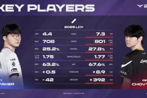 体育资讯7月25日讯 T1对阵GEN赛前,LCK官方贴出两边中单数据对比。其中Chovy在列出的全部数据都领先于Faker,此外除参团率外Chovy列出的数据都在中单位第一,分均经济和分均输出在LCK全位置第一。