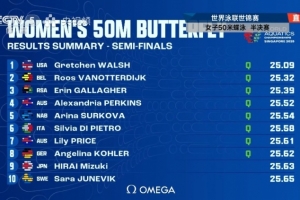 王一淳半决赛游出了25秒68的成绩,排名第十二,无缘晋级 。