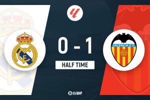 上半场伤停补时3分钟,半场结束,皇马暂0-1瓦伦西亚。