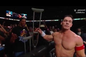 在场边,摔角明星John Cena(赵喜娜)拿走了哈利伯顿的拐重击对手。WWE官方对此评论道:“哈利伯顿送上了间接助攻。”