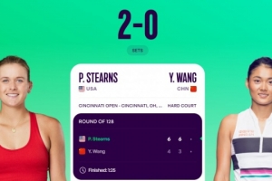 在本场比赛中,王雅繁以4-6 3-6的比分两盘不敌斯特恩斯,无缘更进一步。