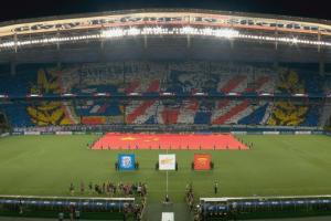 “之前策划的话,将近用了一个多月,将近2个月的时间,因为我们也是和有关部门啊,和场地、所有的球迷会,我们多次沟通协调,然后实现一个大家都觉得比较好的一个方案。然后真正落实的话是在两个星期前,开始所有的物料,所有的人员志愿者安排开始落地。然后从是从本周四开始,我们大概有近200位志愿者,分两到三个批次进体育场,然后把这个所有拼图布置完成。”