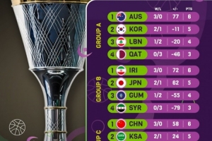 中国男篮小组赛3战全胜,排名C组的第1,直接晋级1/4决赛。另外3个小组的第一,澳大利亚、伊朗、新西兰,战绩也都是3胜0负,也都直接晋级1/4决赛。