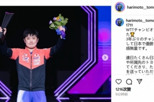 张本智和在个人社媒写道: