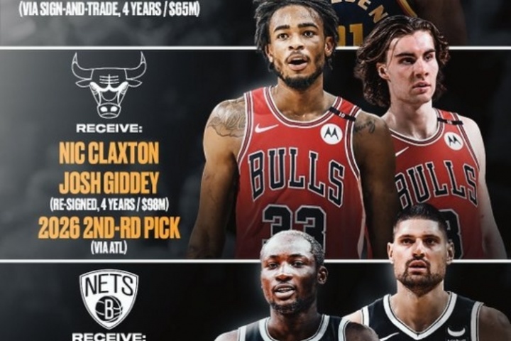 公牛得到:克拉克斯顿+2026年的一个次轮(原属老鹰,现属篮网)+续约吉迪