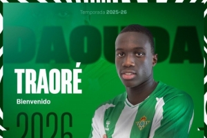 达乌达-特劳雷现年19岁,法国中场,去年夏天从尼斯加盟南安普顿,上赛季外租瓦朗谢纳效力,共为该队出战27场法丙。今天,南安普顿官方宣布,达乌达-特劳雷租借加盟西甲贝蒂斯,租期一个赛季。