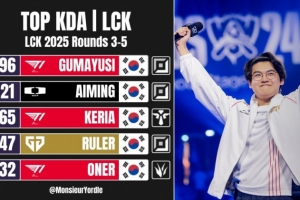 体育资讯8月18日讯 外媒Monsieur Yordle发布截至目前2025 LCK第3-5轮中KDA,分均补刀,分均输出三项数据排名: