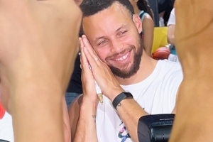 输了也开心!库里满脸笑容与三分绝杀的中国球员一起比晚安!