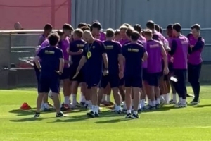 David Ibáñez透露,德容孩子出生、孔德续约,今日的训练之中,巴萨球员列队以拍打的方式对他们表示祝贺。