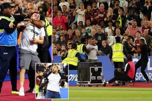 社交媒体用户称,当蓝军攻入本场第五球后,有一名年轻的西汉姆球迷成功闯入球场。在主队遭遇耻辱之夜的同时,数千名愤怒的西汉姆球迷被拍到提前离场。