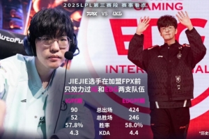 体育资讯8月25日讯 对阵BLG前,官方发布了FPX打野选手jiejie的数据;
