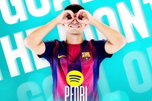 此役第49分钟,巴萨右侧角球机会,战术角球开出,亚马尔再传给佩德里,佩德里外围起脚远射折射入网。这粒进球帮助巴萨将场上比分扳为1-2,最终巴萨完成让二追三,客场取胜。