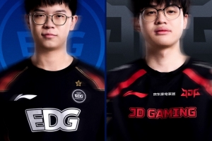 【16:55】EDG中路放出先锋撞掉JDG一塔,随后xiaohao开车来下再撞JDG一塔,EDG经济领先3k。
