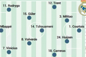 综上所述,皇马客战皇家社会预计首发阵容为:库尔图瓦;阿诺德、米利唐、赫伊森、A费;居勒尔、琼阿梅尼、巴尔韦德;罗德里戈、姆巴佩、维尼修斯