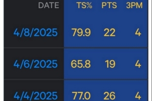赛后,勇士自媒体WarriorsMuse晒出一个球员的近4场进攻端数据表,可以看到他连续4场轰进4+三分。自媒体发问:“猜猜这是谁?”