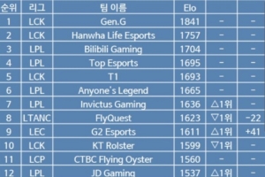 体育资讯9月30日讯 S15全球总决赛开始前,韩网更新了各赛区战队的战力榜单:
