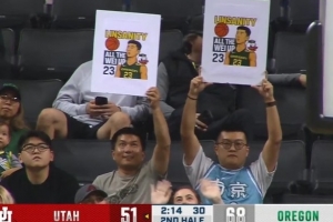 有心了!俄勒冈大学比赛现场有同曦球迷为林葳加油助威