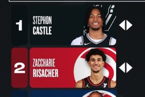 体育资讯4月10日讯 NBA官方公布了本赛季最后一期的新秀榜,最后一期新秀榜仅列出了前三名,也就是可能入围最佳新秀候选的三位提名。其中,马刺新秀卡斯尔排名第一。