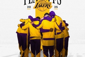 赛后,湖人官方推特晒出一张海报,庆祝球队晋级季后赛。