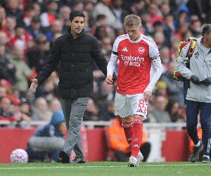 英超第7轮,阿森纳主场2-0西汉姆联,阿森纳主帅阿尔特塔赛后出席了新闻发布会,提到了厄德高和赖斯的伤病问题。