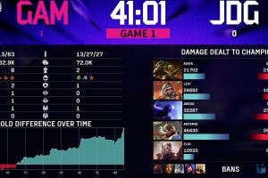 值得一提的是这也是GAM在本次比赛中的小局首胜,在此前的比赛中GAM被WBG两局横扫;而昨日JDG击败了WBG。