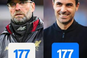 【相信过程】Amazon Prime Video Sport:阿尔特塔执教阿森纳前300场比赛的胜场数(177),与克洛普执教利物浦前300场时一模一样💯