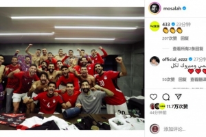 萨拉赫社媒晒出全队在更衣室的合照,庆祝球队晋级2026年世界杯。