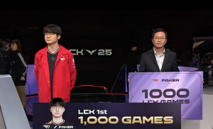 体育资讯4月10日讯 LCK常规赛T1vsKT,Faker迎来1000场比赛,赛前官方为Faker颁奖,随后LOL官方转发Faker千场颁奖视频,并配表情:GOAT;同时G2官方也在底下评论晒出Caps和Faker合照,并配表情:GOAT。