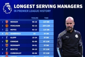 体育资讯10月9日讯 德转列出了英超历史上的主帅任职时长榜,温格、弗格森前二,瓜迪奥拉第四,克洛普第五。