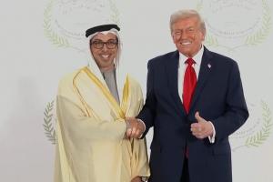 体育资讯10月14日讯 美国总统特朗普会面了阿联酋副总理曼苏尔,特朗普与其握手时笑容满面:“非常多的资金,无限的资金,非常好的人。”