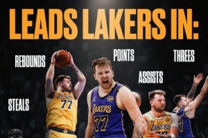 东契奇加入湖人之后,一共拿到750分,218个篮板,204个助攻,44个抢断,命中97个三分球,全部领跑全队!