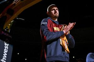 本赛季至今,约基奇场均砍下29.8分12.8篮板10.2助攻1.8抢断,投篮命中率是57.5%,三分命中率为41.4%,罚球命中率是80.8%。