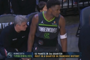 52分也是森林狼队史单节新高得分纪录(此前为47分)。