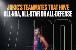约基奇在掘金效力的整整10年间,他的队友中没有一个人在和他同队效力时入选过最佳阵容、全明星或者最佳防守阵容。