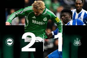 体育资讯10月21日讯 英超第8轮比赛全部结束,纽卡本轮1-2不敌布莱顿。在今天凌晨布伦特福德赢球后,纽卡跌至英超14名。