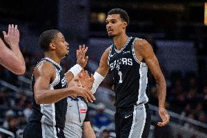 文班亚马本场比赛攻守依旧积极,飞天遁地难以阻挡,但可惜外线没开,防守端也陷入犯规麻烦,最终加时赛早早犯满离场。不过马刺其他球员在文班下场后,反而进攻端发挥更加出色,三分万箭齐发拿下了比赛。