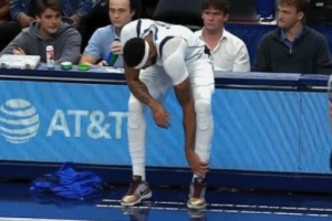 别有事啊!浓眉落地踩到对方脚上疑似崴伤 返回更衣室接受治疗