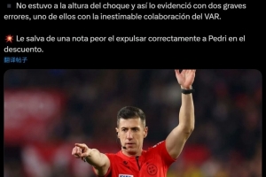 2.5分!西媒:主裁判格拉多犯下2次重大误判,好在正确罚下佩德里