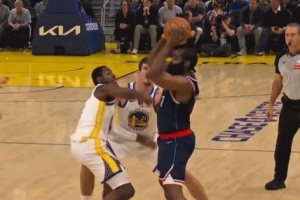 哈登造波斯特三分犯规 勇士果断选择挑战并成功 改为中圈争球