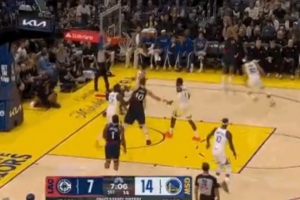 哈登造波斯特三分犯规 勇士果断选择挑战并成功 改为中圈争球