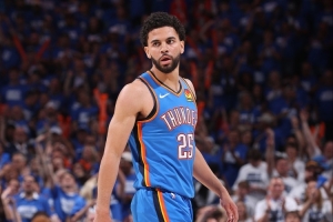 相关新闻>>>这真杀死比赛了!还剩15.5秒 亚历山大顶着防守人三分一击毙命!