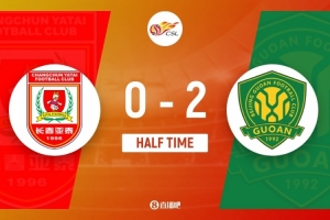 半场-亚泰0-2国安 塞鸟弑旧主法比奥失点后命中,卡米洛恶犯染黄
