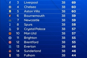 OPTA预测英超最终排名:阿森纳80分夺冠,曼城红军69分,曼联第10