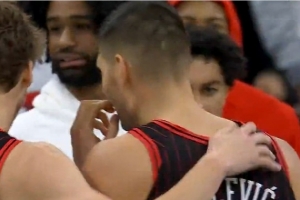 外线开火!博格丹晃开防守 横移加长三分洞穿篮心