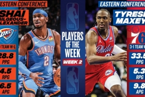 周最佳出炉:SGA率队4-0场均揽28.8分 马克西场均轰33.5分9.8助