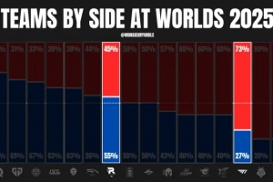 外媒统计T1 KT S15选边情况:T1红色方选边最多 KT蓝色方胜率100%