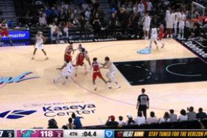 此前一个回合热火暂停发球 克里斯托弗接球后回场↓↓↓